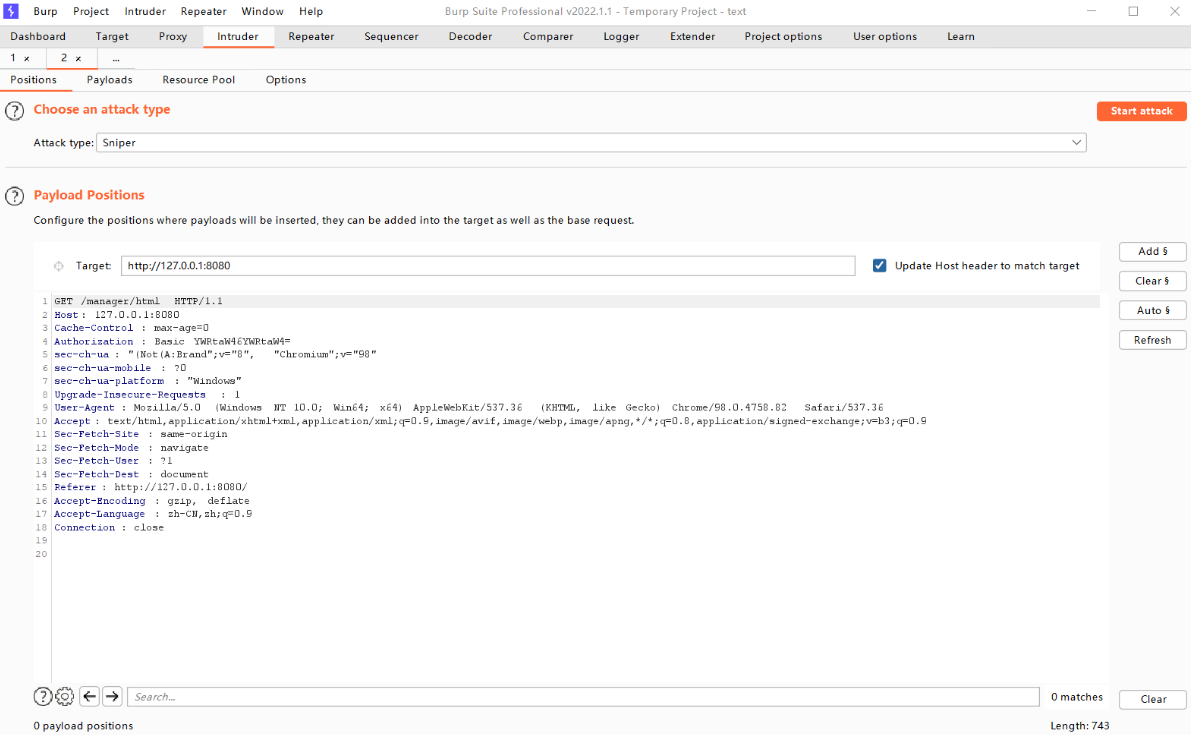 1.将抓到的包发送到爆破模块,快捷键ctrl+i