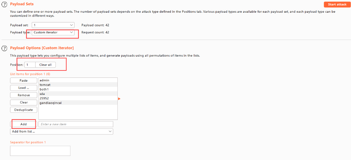 在position选择表1,输入用户名字典