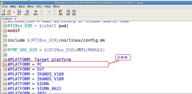 [root@XiaoLong DPO_MT7601U_LinuxSTA_3.0.0.4_20130913]# gedit Makefile +30