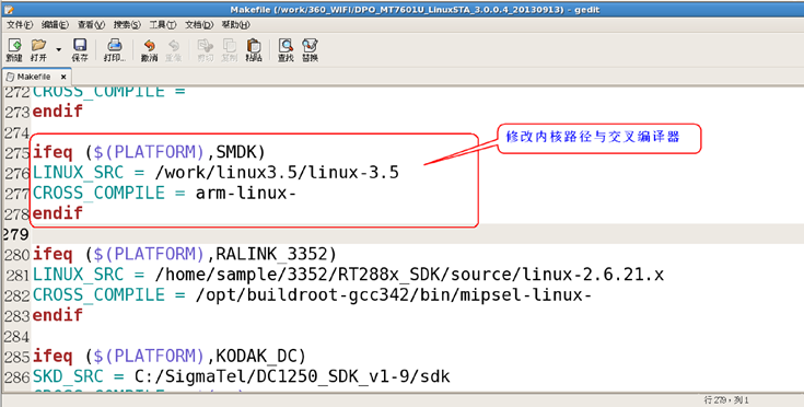 [root@XiaoLong DPO_MT7601U_LinuxSTA_3.0.0.4_20130913]# gedit Makefile +275