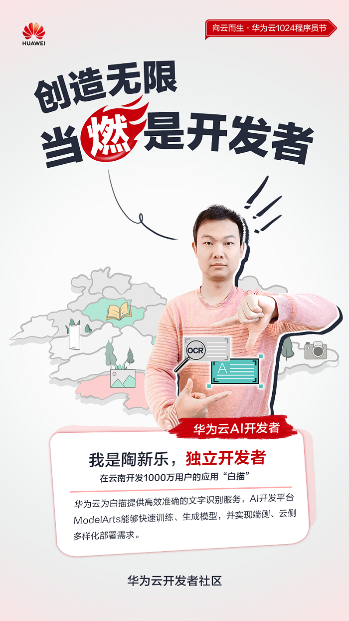 10月24日,👉 在华为云向云而生·1024程序员节直播盛典上,陶新乐将和大家娓娓道来他是如何在云南,开发出1000万用户的白描,实现独立开发者的自由之路。