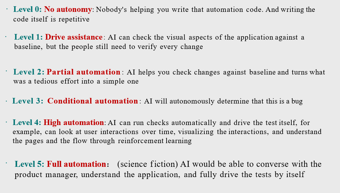 [3] 6 levels of AI-based testing: Have no fear, QA pros, https://techbeacon.com/app-dev-testing/6-levels-ai-based-testing-have-no-fear-qa-pros