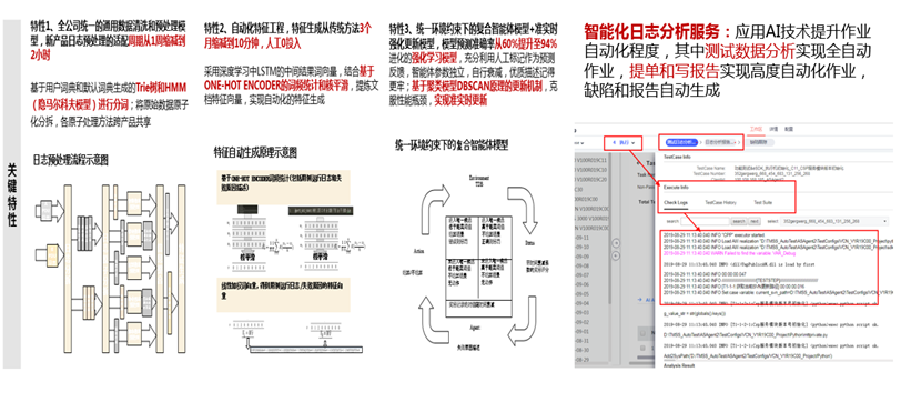 随着软件规模的持续增长以及产品迭代周期的不断加快,自动化测试用例的数量越来越大,自动化测试工程中的失败日志数量也越来越多,人工分析工作量大、时间成本高。测试数据智能分析定位旨在结合智能化算法根据失败日志和相关测试数据分析可能存在的产品问题,提升分析效率。当前华为云测试智能分析是根据产品线测试日志数据特征,在通用的日志预处理后,依照日志量采用不同方式进行特征工程,生成日志特征后,基于随机森林、最近邻、强化学习、神经网络等来做模型融合,进行失败原因的定界与定位。