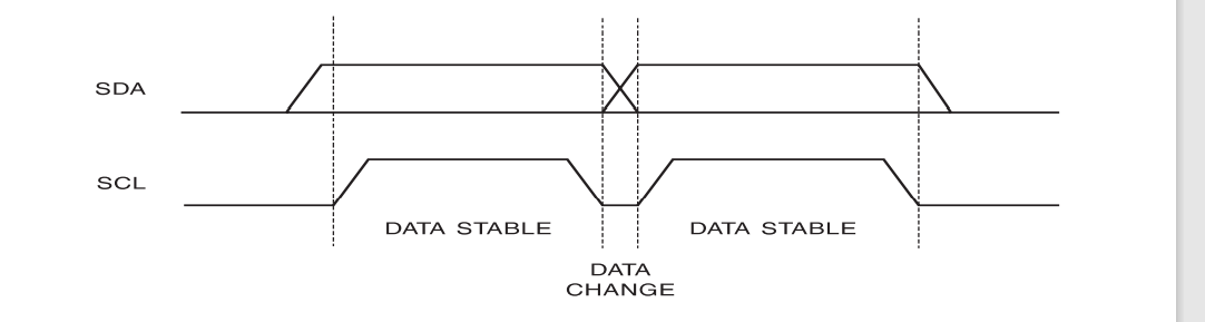 停止信号:当 SCL 为高而 SDA 由低到高的跳变,表示产生一个停止条件。