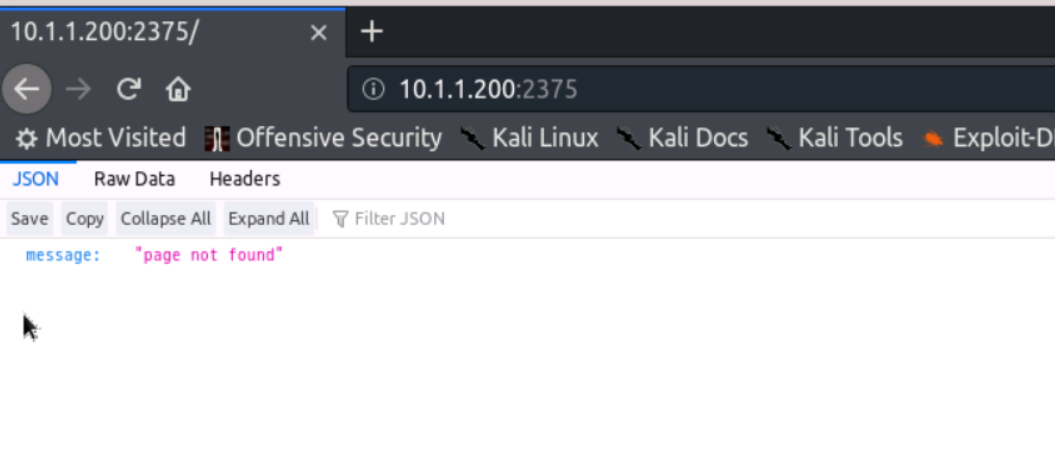 发现page not found(页面没有找到)代表json代表2375有存在漏洞