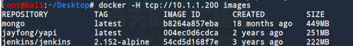 docker -H tcp://10.1.1.200 images //列出所有镜像