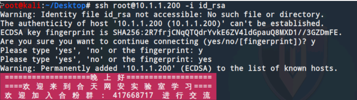 ssh root@10.1.1.200 -i id_rsa