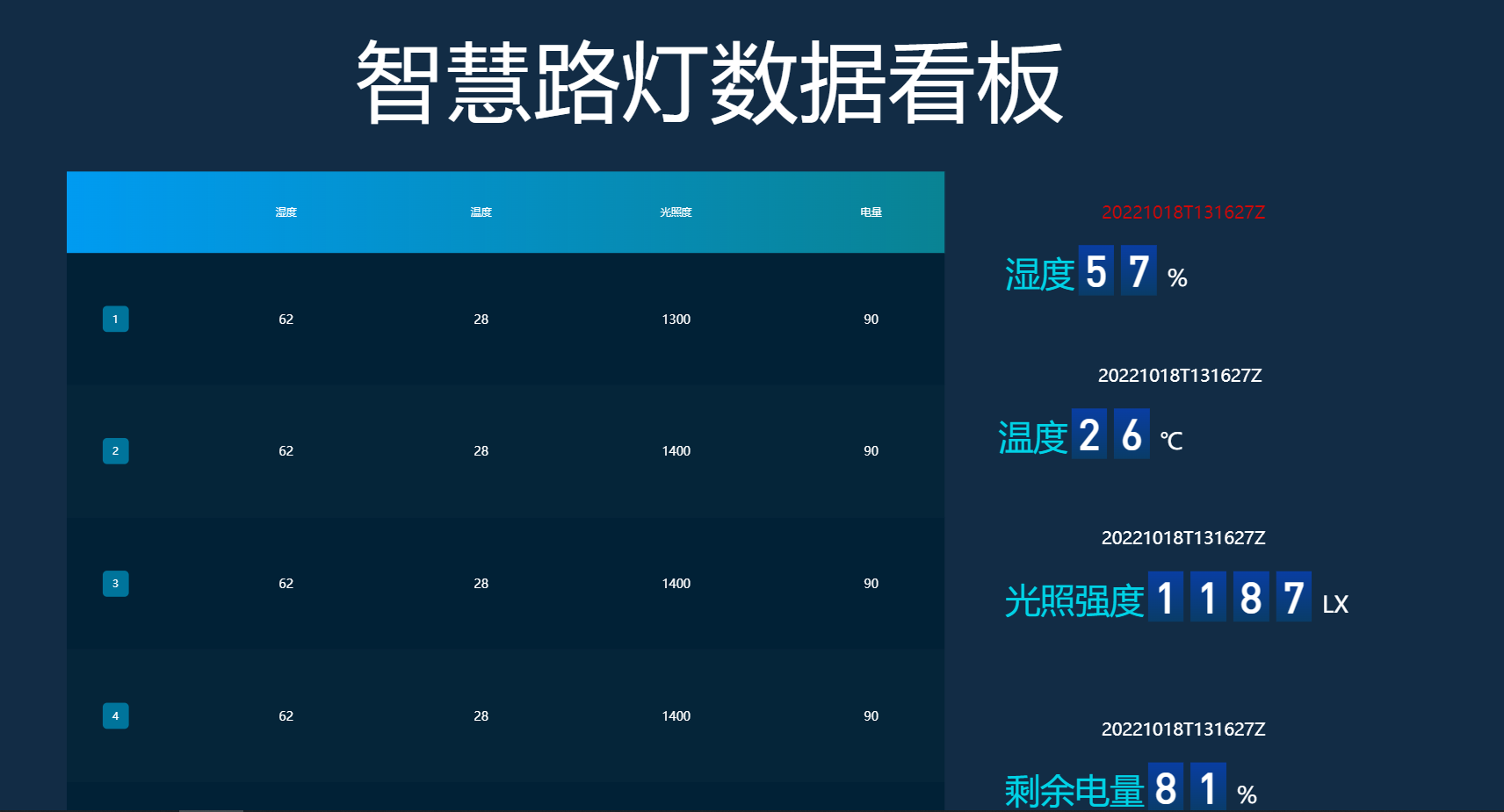 通过智慧路灯的项目,介绍了一个物联网设备如何上云,云平台如何配置,数据可视化大屏如何对接显示的整个流程。 如果手上没有智慧路灯的硬件,也可以通过文中介绍的MQTT客户端软件,模拟设备数据进行数据上传,一样可以完成云端的所有操作。 有了可视化大屏,就可以实时查看设备的状态,本次的例子里设计的界面比较简单,如果想设计酷炫,可以查看官方的模板,在新建大屏的时候可以选择模板进行创建。