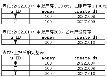 增量表,记录更新周期内的新增数据,即在原表中数据的基础上新增本周期内产生的新数据,没变化的数据不会被记录;