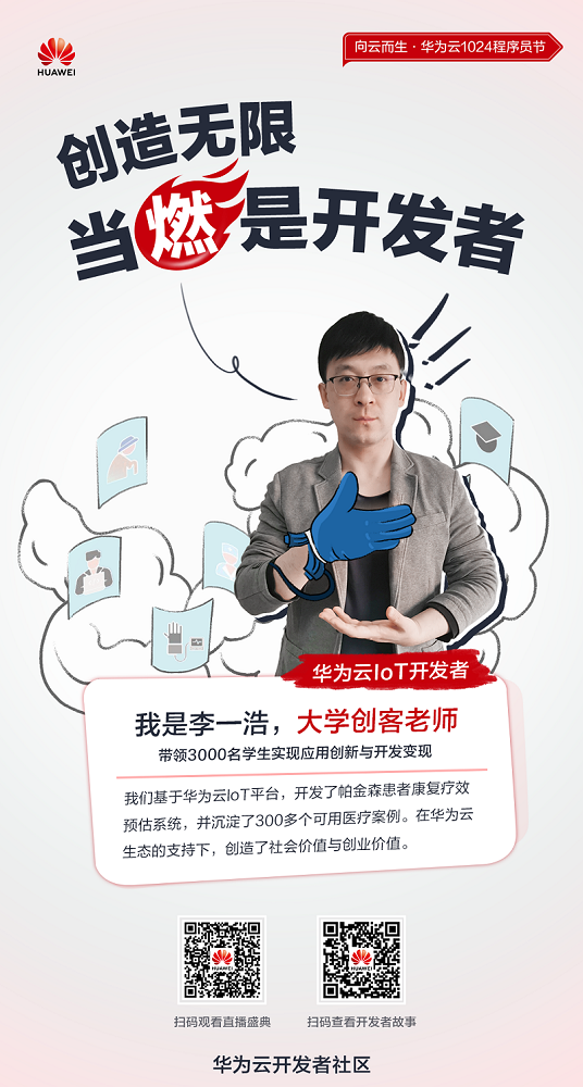 10月24日,👉 华为云向云而生·1024程序员节直播盛典上,李一浩老师将分享多年以来和学生参与创新创业项目开发的经验,并邀请自己的两位优秀学生讲述如何打破专业的壁垒,在一个个创新项目中成长,为那些还在迷茫的高校开发者,照亮前进的道路。