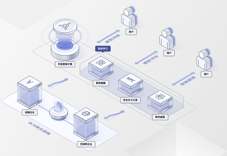 联邦机器学习是可信智能计算服务提供的在保障用户数据安全的前提下,利用多方数据实现的联合建模。