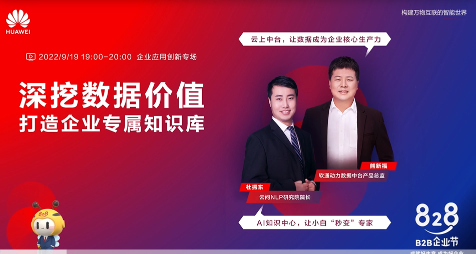 本次直播云问NLP研究院院长杜振东、软通动力数据中台产品总监熊新福也将带来行业优质解决方案及实践案例,分享数字化时代的企业转型新思路!本次分享分成了上下场次,上半场结合知识管理和知识计算典型场景,在直播中会详细介绍AI+知识的服务矩阵和价值。下半场软通动力数据中台产品总监熊新福带来《构筑数据价值应用,助力企业数字化转型》的主题分享,通过“云上中台 • 重明”数据中台解决方案的介绍和具体案例呈现,解答“无管理的数据如何才能提供有效价值?企业面临着数据‘存’、‘管’、‘用’难题时如何破局?”等问题,从数据管理和应用层面为企业深化数字化转型实践提供参考。