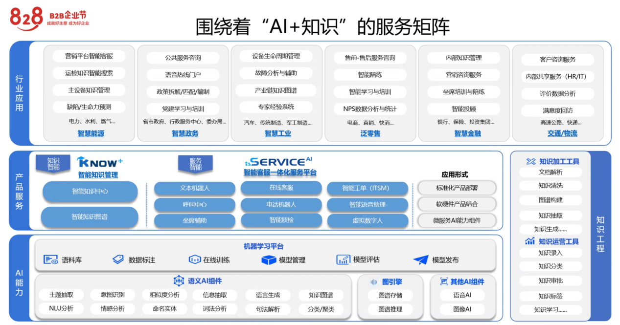 比方说在做维修场景,可能会跟设备去打交道,但是要在做营销场景的话,就会跟前线的4S店或者营销中心去打交道,但是底座都会统一化的去使用知识中心平台,这对于目前企业来说,重复建设的成本实在是太大了。
