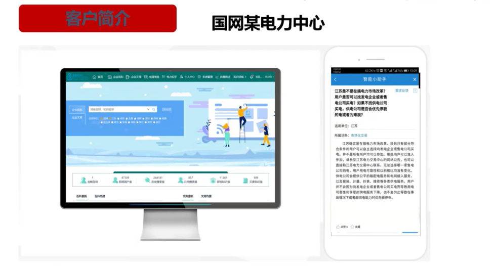 通过建设电力百科、文库、学院和知乎4大模块,来服务了最终4万家的用户,来给他们提供整体的知识查询、知识学习和知识交流平台,并嵌入到最终的PC端的系统当中,让他们提高。