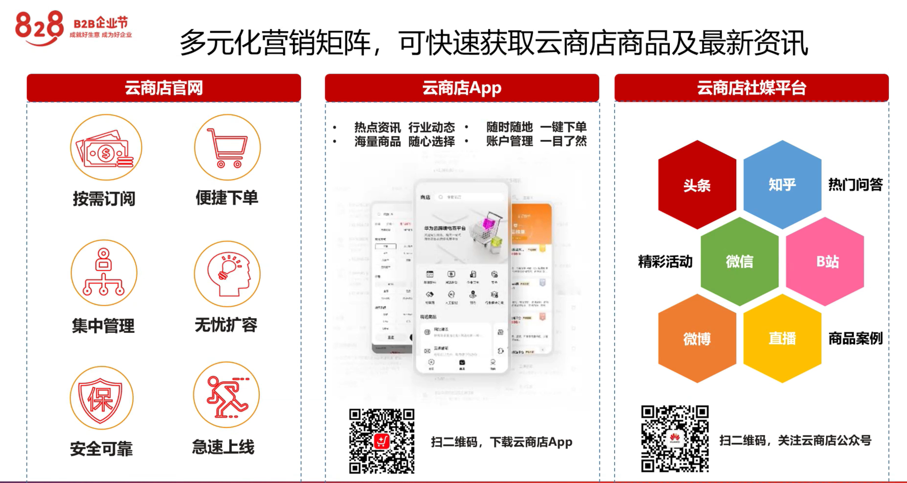 为加速各行业的数字化转型,除了联合生态伙伴、邀请行业专家打造一系列直播外,华为云创新了多元化营销矩阵,打造企业上云“百宝箱”——云商店,携手伙伴,汇集海量优质上云商品,为企业带来无忧的选品、使用及服务体验,让企业数字化转型更快、更轻松。