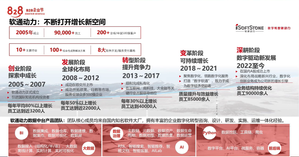 2018年软通动力,深化布局数字化转型战略,同期然后也成立了软通动力数据中台产品团队,汇聚了数据仓库、大数据数据治理、AI领域的技术专家,开始全面启动了数据中台产品研发以及持续的迭代优化。