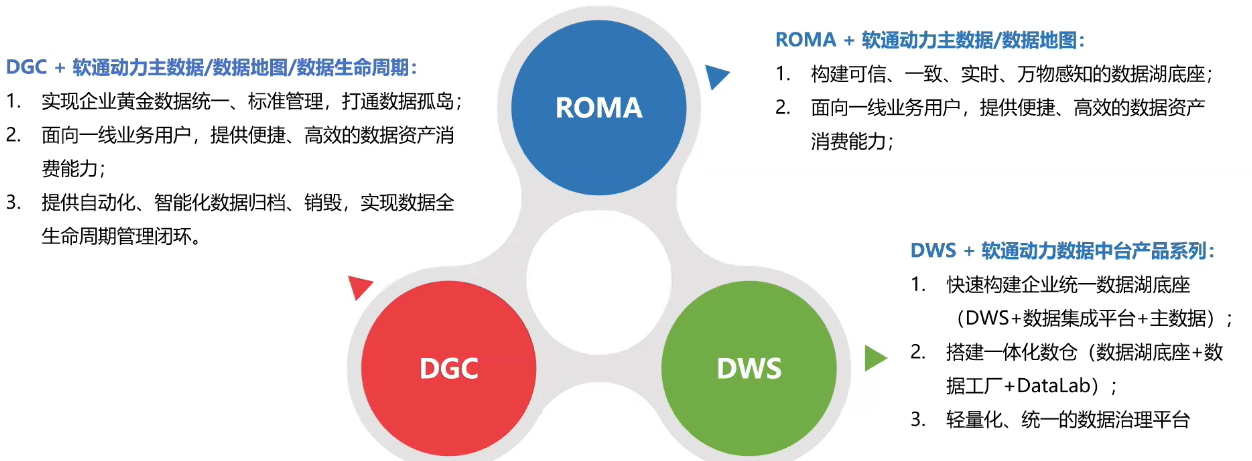 华为ROMA+软通动力主数据数据地图联合解决方案,构建可信、实时、一致,万物感知的数据湖底座。同时面向一线的业务用户,提供便捷高效的数据资产消费能力。