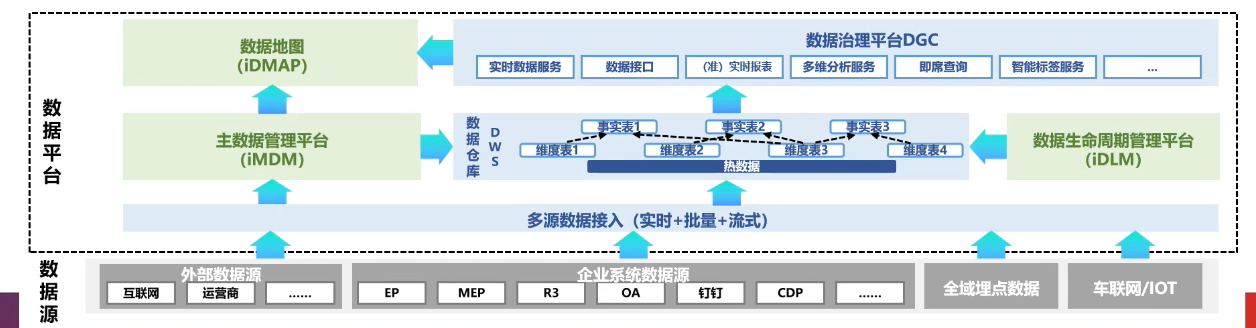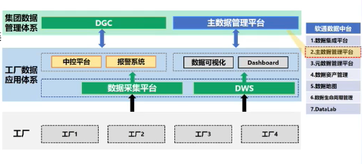 华为云与软通动力数据中台联合解决方案,落地国内某啤酒企业,该项目中基于华为DWS以及 IT采集平台,IT管理平台来构建企业数仓,搭建工厂整体的数据应用体系。基于华为DGC与软通的主数据管理平台,搭建集团统一的数据数据治理平台,实现集团与工厂的高效的数据协同实施。