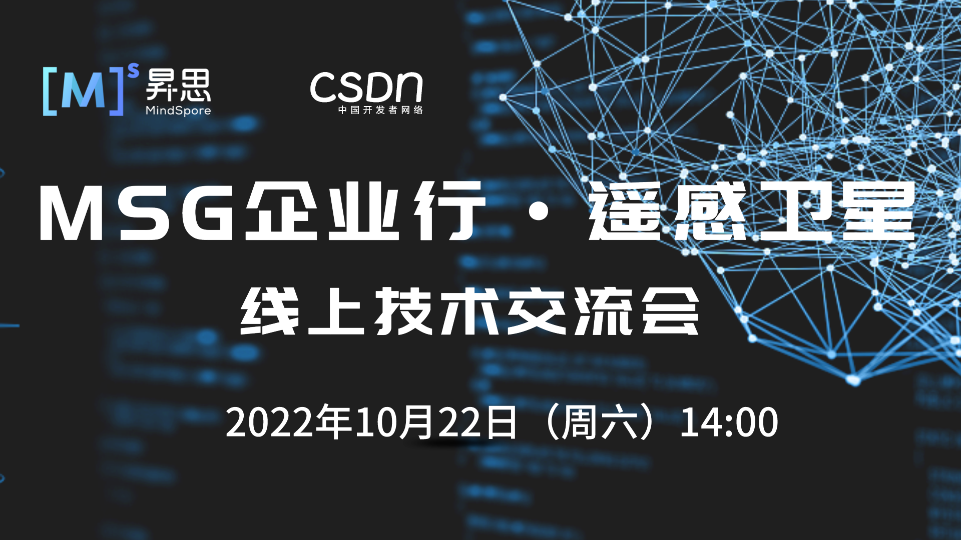 10月22日(周六)14:00【MSG企业行·遥感卫星】线上交流会,昇思MindSpore开源社区诚邀您与各企业深入交流与分享,一起探索基于人工智能的卫星遥感应用体系!