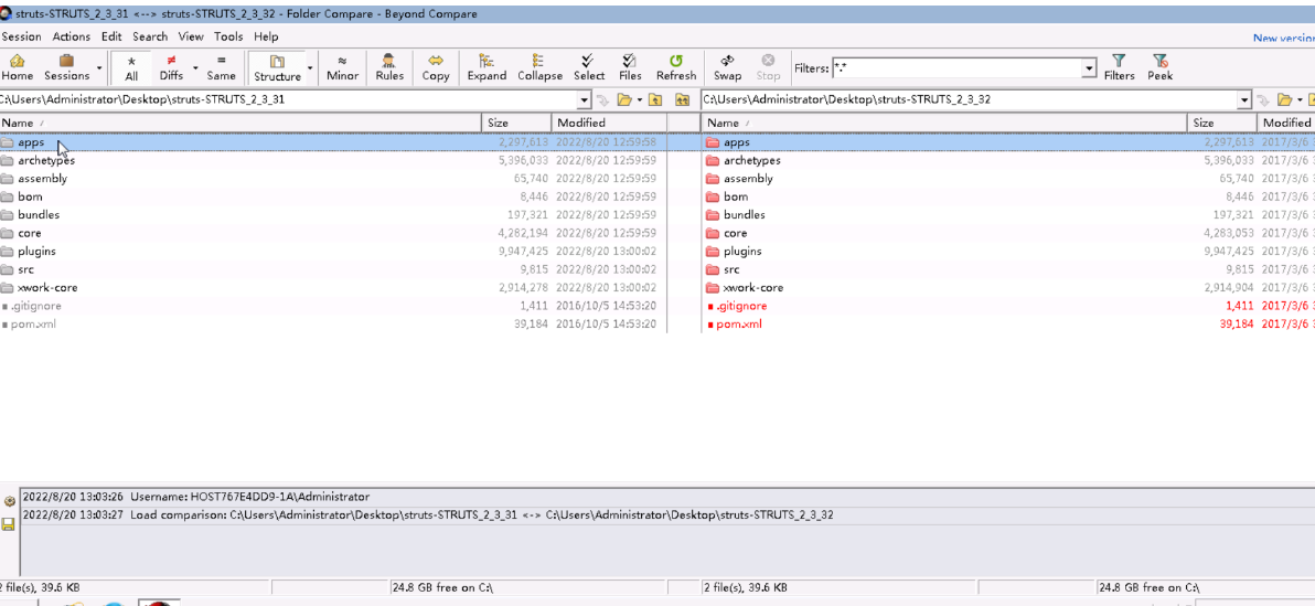 打开页面如下是两个新旧文件夹的对比