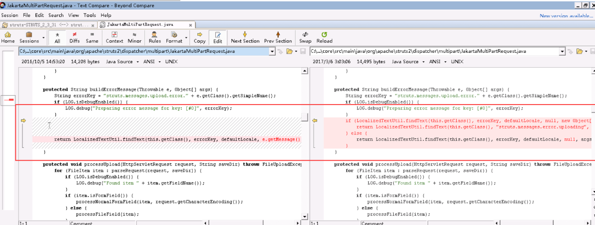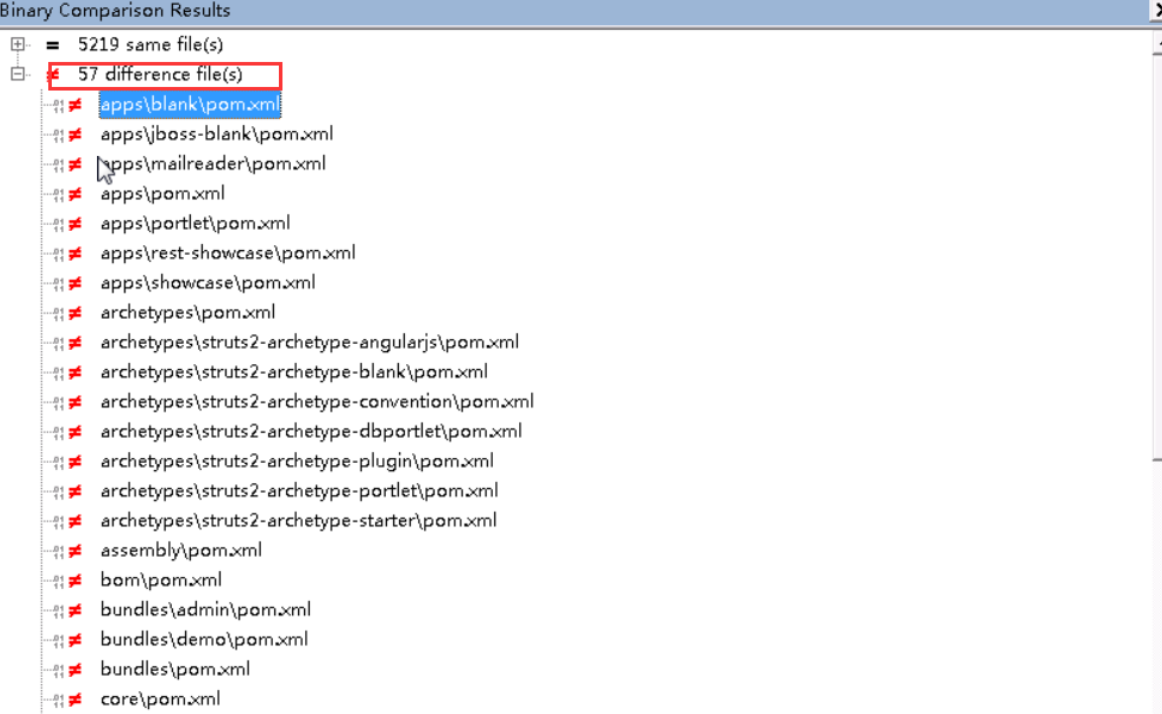 比较完发现共有57处不同,点击.xml发现只是修改了版本号,发现又三个比较长的.java文件