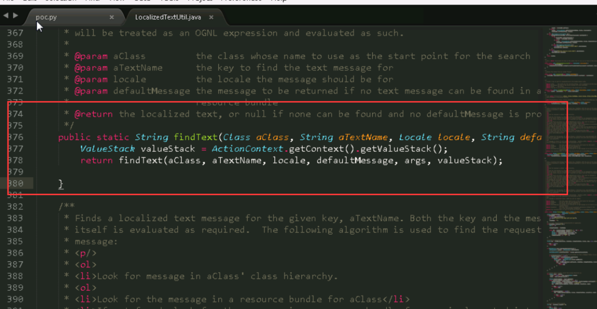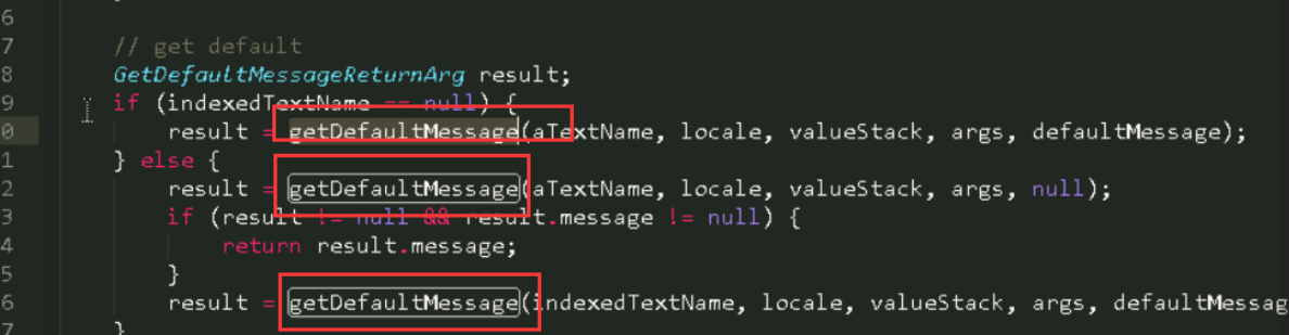 查看调用的getDefaultMessage函数,在这个函数里面调用了TextParseUtil.translateVariables在TextParseUtil.translateVariables方法中存在安全漏洞,可使远程攻击者通过构造的OGNL表达式,执行任意代码