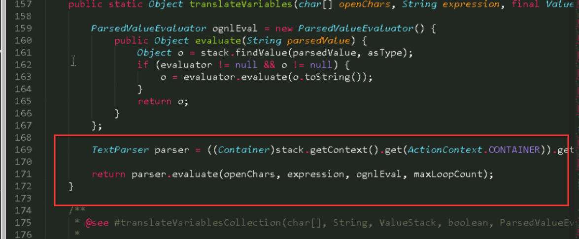 在TextParseUtil.java中找到return parser 发现在这调用了ognl的方法,这就是漏洞形成的原因