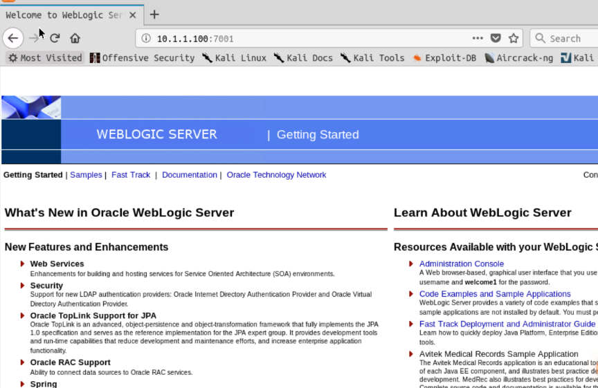 切换到kali机器,打开http://10.1.1.100:7001