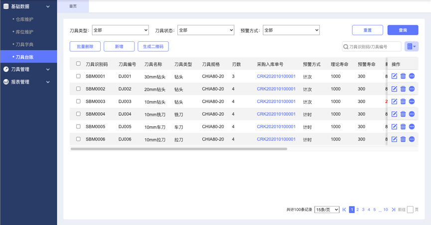 现在:采集数控机床的生产数据,将生产数据与MES的订单数据所对应,自动记录每一台机床的刀具使用次数,在使用次数达到上限时,自动提醒更换,既避免了因过期使用导致的良品率下降,又减少了提前更换刀具的浪费。
