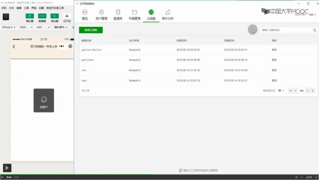 右击cloudfunctions,选择“同步云函数列表”,完成同步云函数列表以及上传并部署getContent和getUserCollectList云函数操作,重新编译后选择一年级上册的书,即可实现听写功能。同样的导入剩余的数据库集合即可实现所有书册的听写功能,如图5所示。