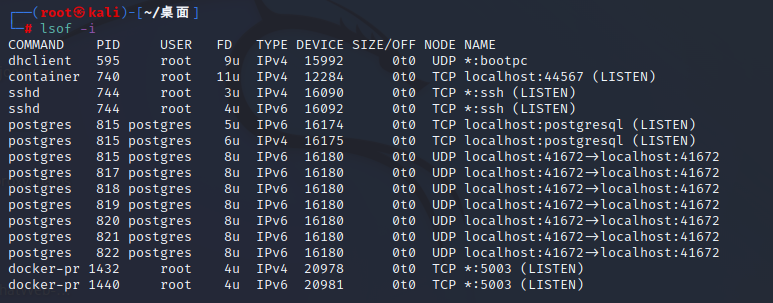 - lsof -i(查看正在进行的网络连接)