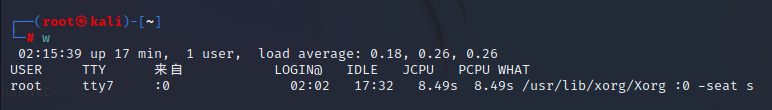 - w(显示已登陆的用户,且在执行的命令)