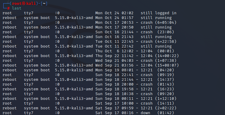 - last (查看登录成功的用户)