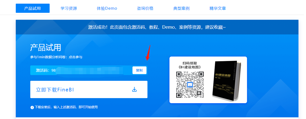 复制该激活码,贴到前面录入激活码的页面: