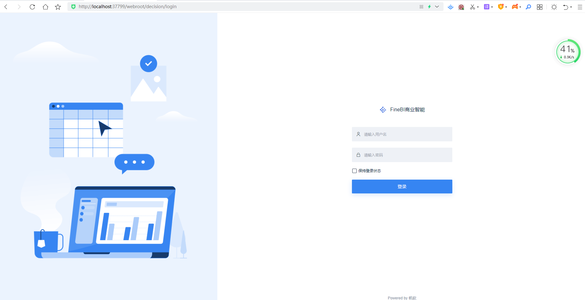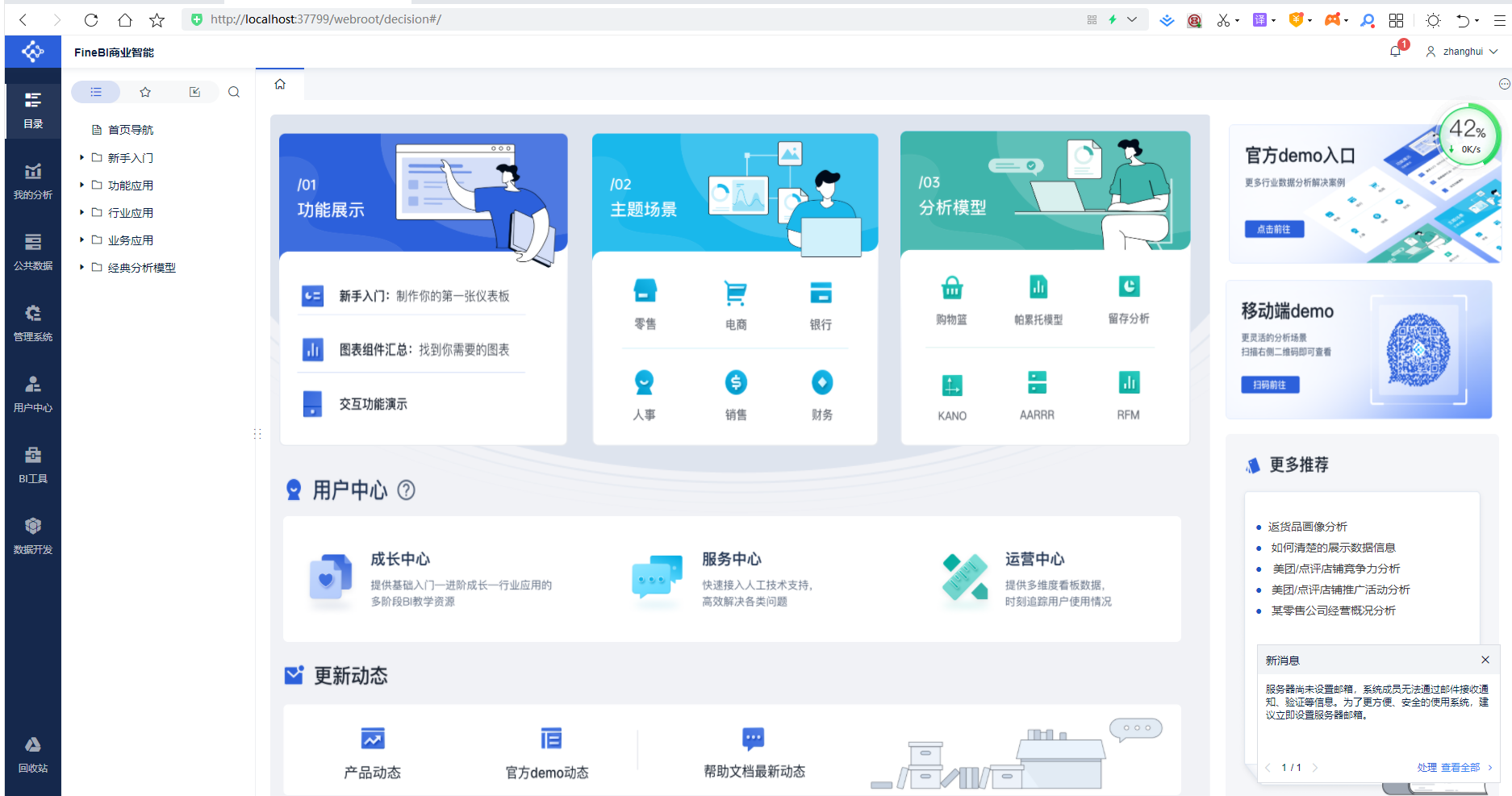 输入刚才的用户名和密码,即可进入FineBI的页面: