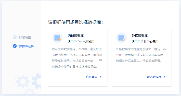 由于是个人试用,选择内置数据库,点击直接登录,系统会打开登录页面:
