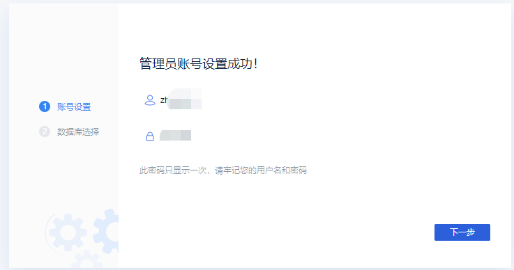 输入后还会提示你现在的管理员账号和密码是什么: