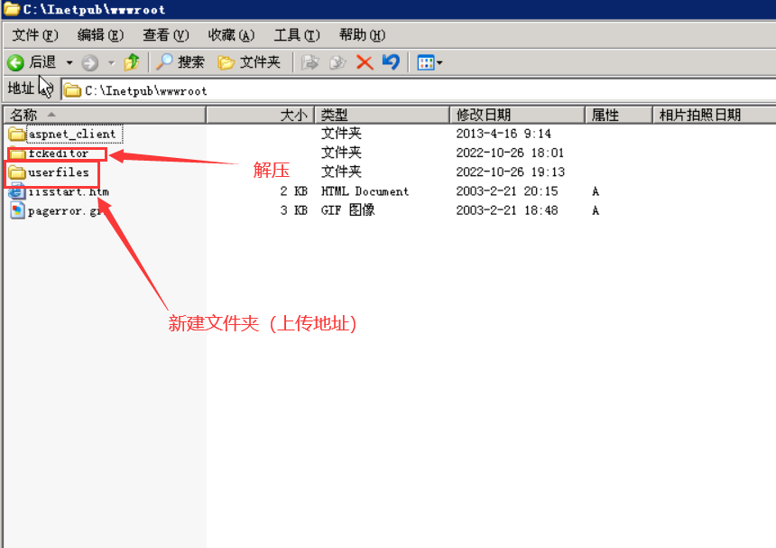 1.将fckEditor上传至网站目录C:\Inetpub\wwwroot。