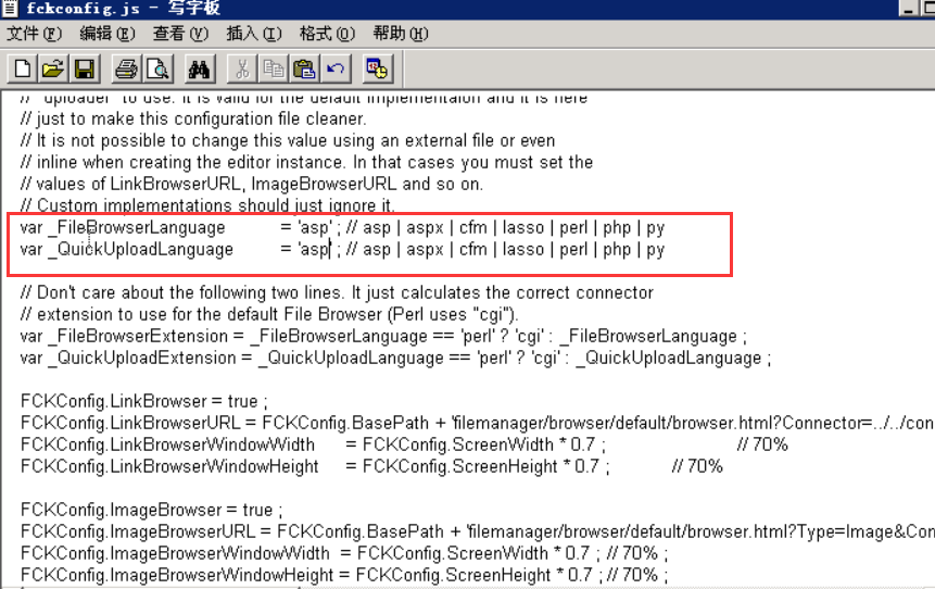 2.配置fckEditor支持ASP脚本,并开启文件上传功能。