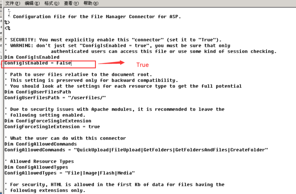 到/FCKeditor/editor/filemanager/connectors/asp/config.asp