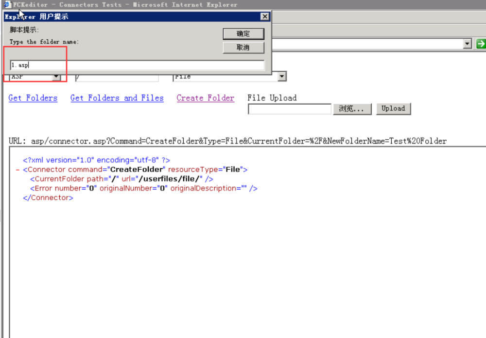 在userfiles目录下,我们成功地建立了1.asp文件夹。