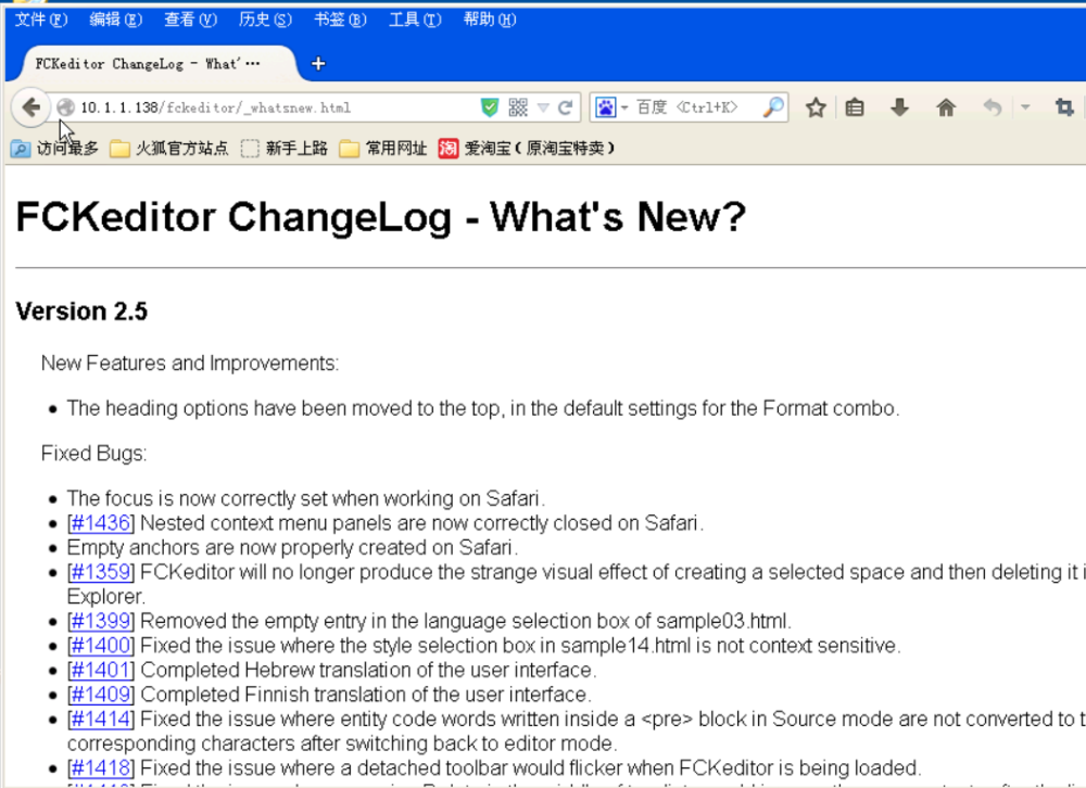 根据版本快速地分析出该fckEditor在线编辑器存在什么漏洞,以及漏洞利用的具体方法。这里我们查询出该fckEditor版本为2.5。