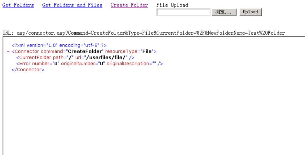 访问/fckeditor/editor/filemanager/connectors/test.html