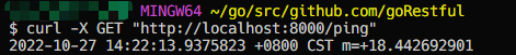 服务器将在 localhost 的端口 8000 上运行。因此,我们可以发出 curl 请求或使用浏览器查看 GET 请求输出: