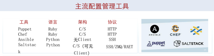 目前,市场上主流的四大开源自动化配置管理工具有: Puppet、Chef、Ansible、SaltStack。