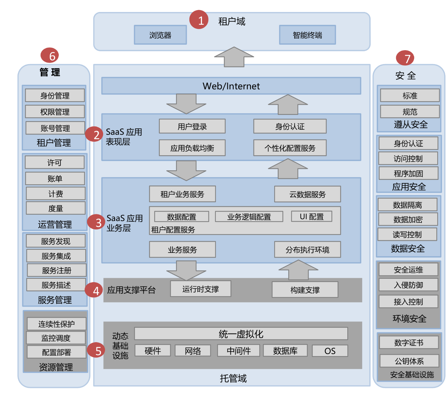 1;资源池化部署模式,多租户共用相同资源池,需要SaaS软件做好应用架构云原生改造以满足用户弹性和敏捷迭代的需求;