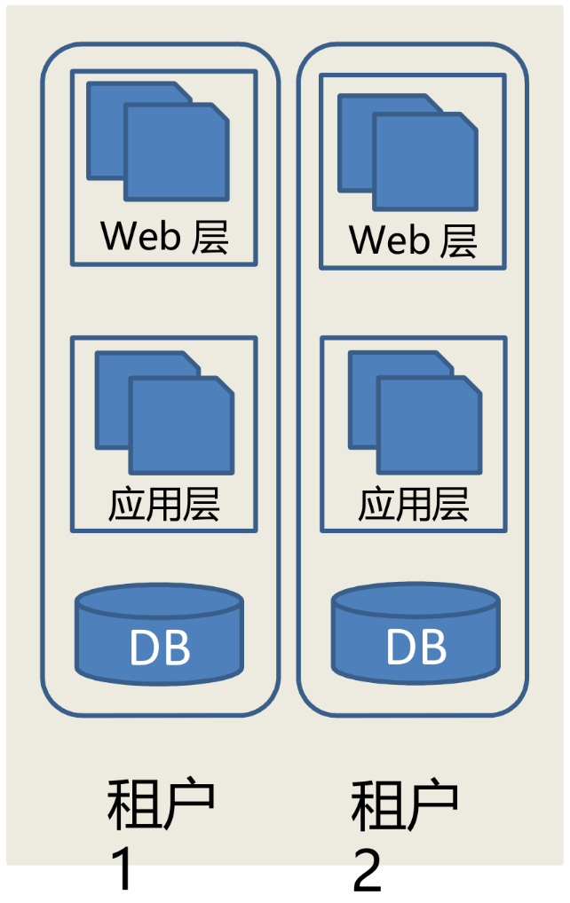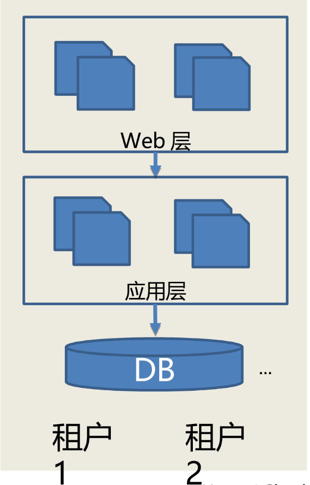 资源池化部署:支持可伸缩性的多租户SaaS应用架构.全部租户部署在一套代码上,该架构增加了初期开发的难度,需要更多的投入