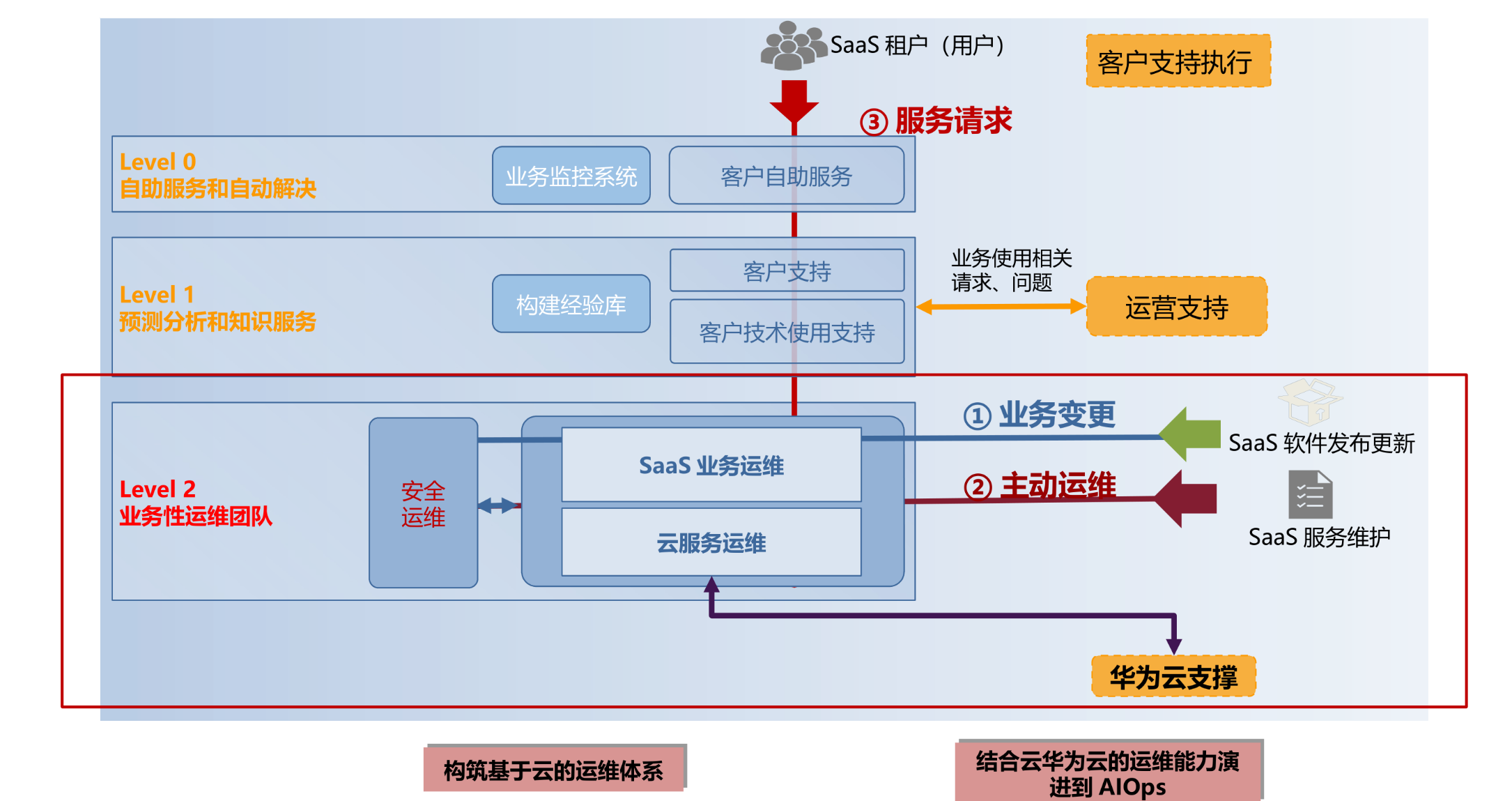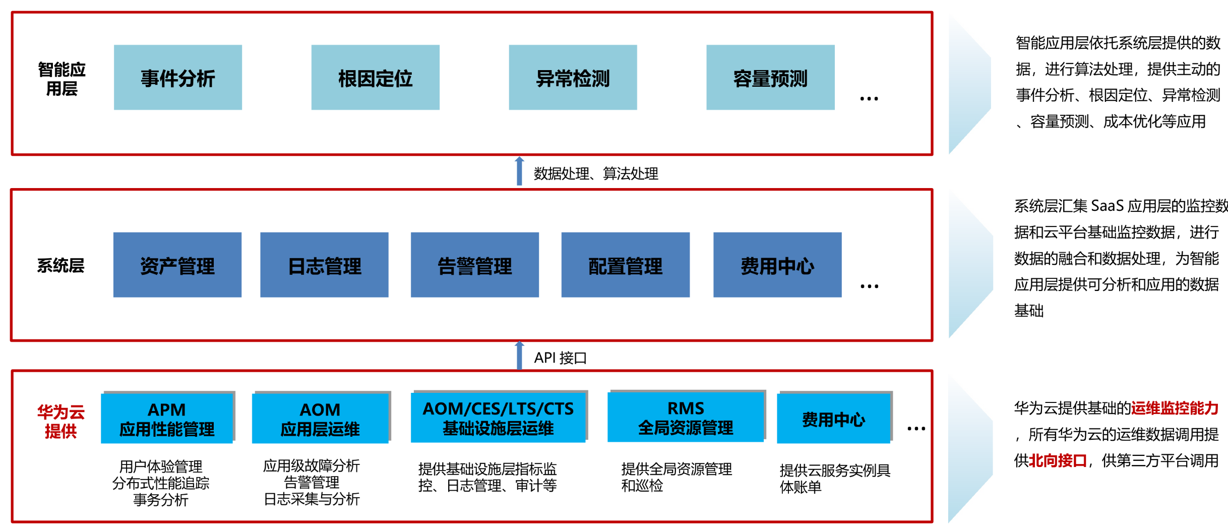 华为云协助SaaS伙伴构筑基于云的运维体系,结合华为云的立体运维能力,演进到AlIOps